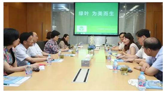 在綠葉集團(tuán)高級(jí)副總裁韓靜女士的陪同下,陳振一主任一行參觀了綠葉集團(tuán)企業(yè)文化廳、產(chǎn)品展示廳和員工辦公區(qū)等處,對(duì)綠葉先進(jìn)的科研技術(shù)、高端的產(chǎn)品形象和專業(yè)的市場(chǎng)營(yíng)銷給予了充分的肯定。