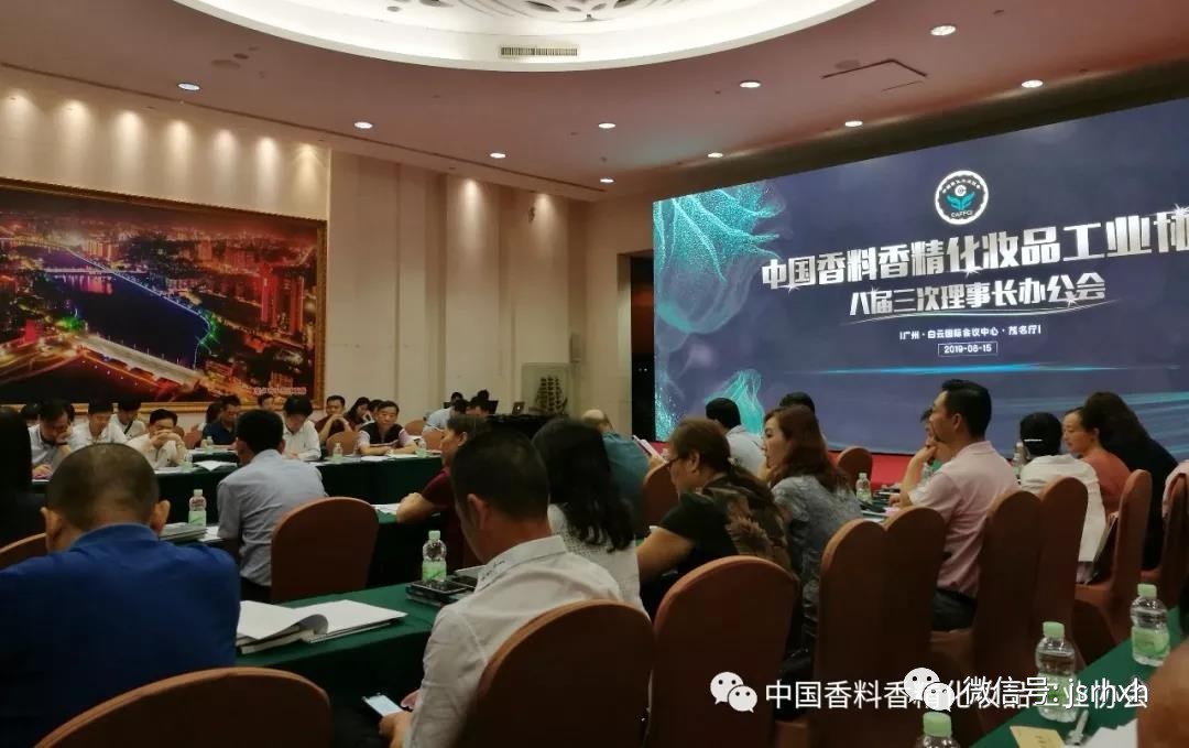 8 月15日上午,中國香料香精化妝品工業(yè)協(xié)會(huì)八屆三次理事長(zhǎng)辦公會(huì)議在羊城廣州召開。會(huì)議由協(xié)會(huì)理事長(zhǎng)陳少軍主持,協(xié)會(huì)理事長(zhǎng)、副理事長(zhǎng)以及特邀單位代表、協(xié)會(huì)秘書處相關(guān)人員近七十人參加了會(huì)議。