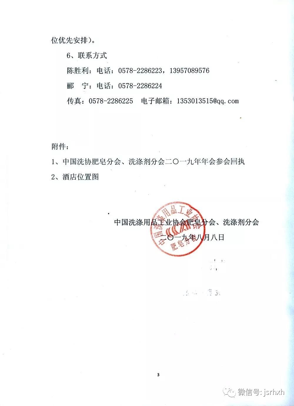 關(guān)于召開中國洗協(xié)肥皂分會、洗滌劑分會2019年年會的通知