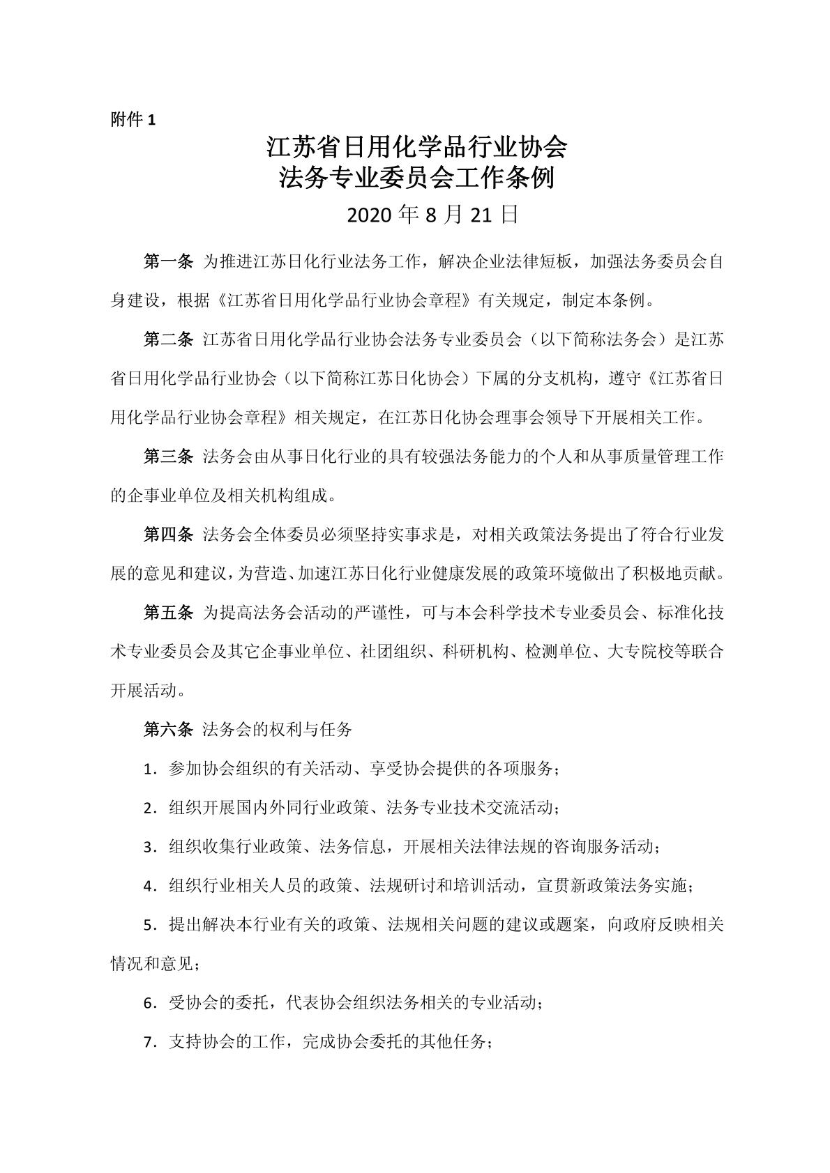 關于成立江蘇省日用化學品行業協會法務專業委員會及組成成員征求意見的通知