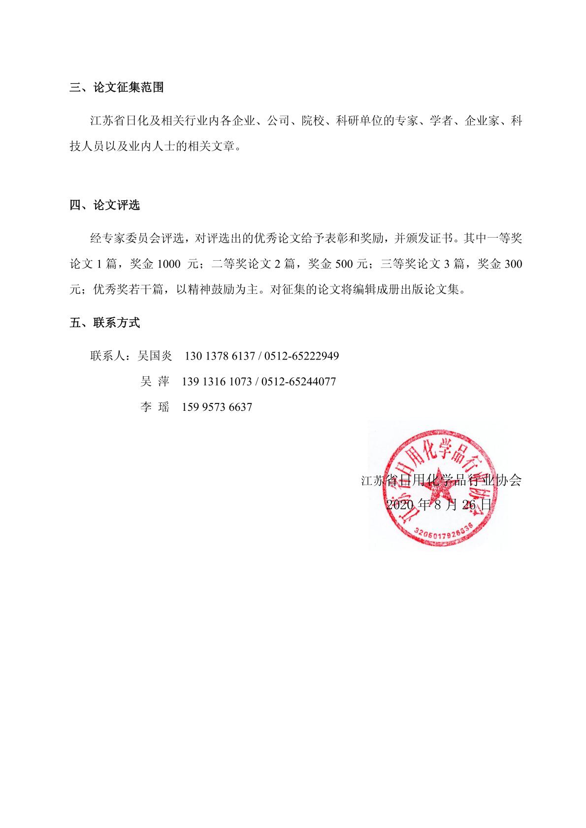 關于江蘇省日用化學品行業學術研討會論文征集通知